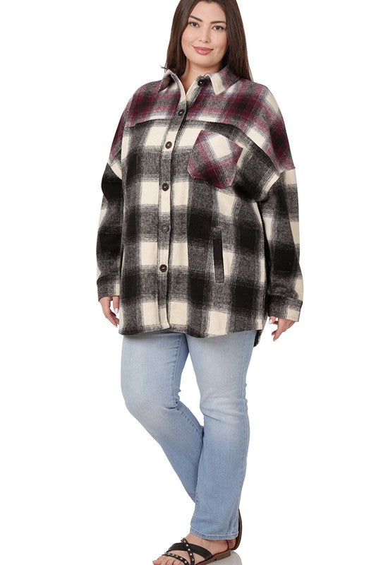 Plus Oversized yarn Dyed Plaid Longline Shacket