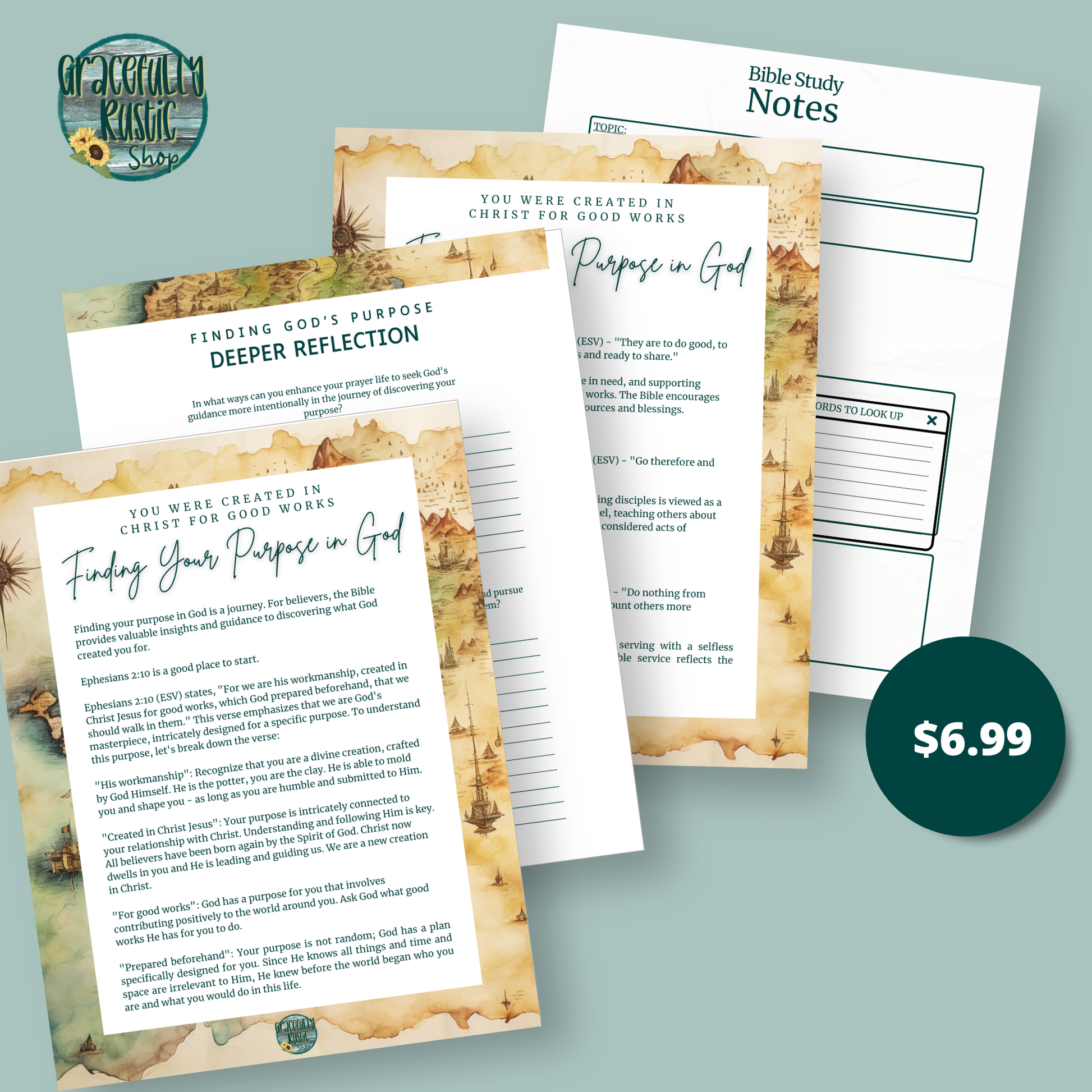 This Bible study guide walks you step-by-step through what Scripture teaches about purpose, calling, and living a life that glorifies God. Rooted in Ephesians 2:10, this guide helps you understand who God created you to be, the gifts He placed inside you, and how to walk out the good works He prepared specifically for your life.