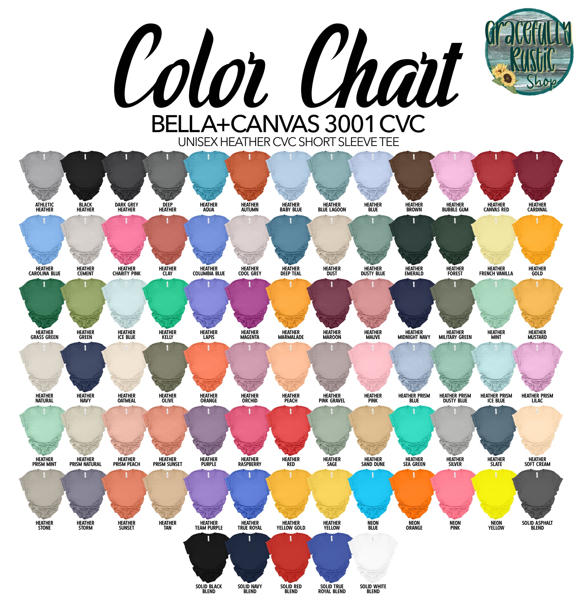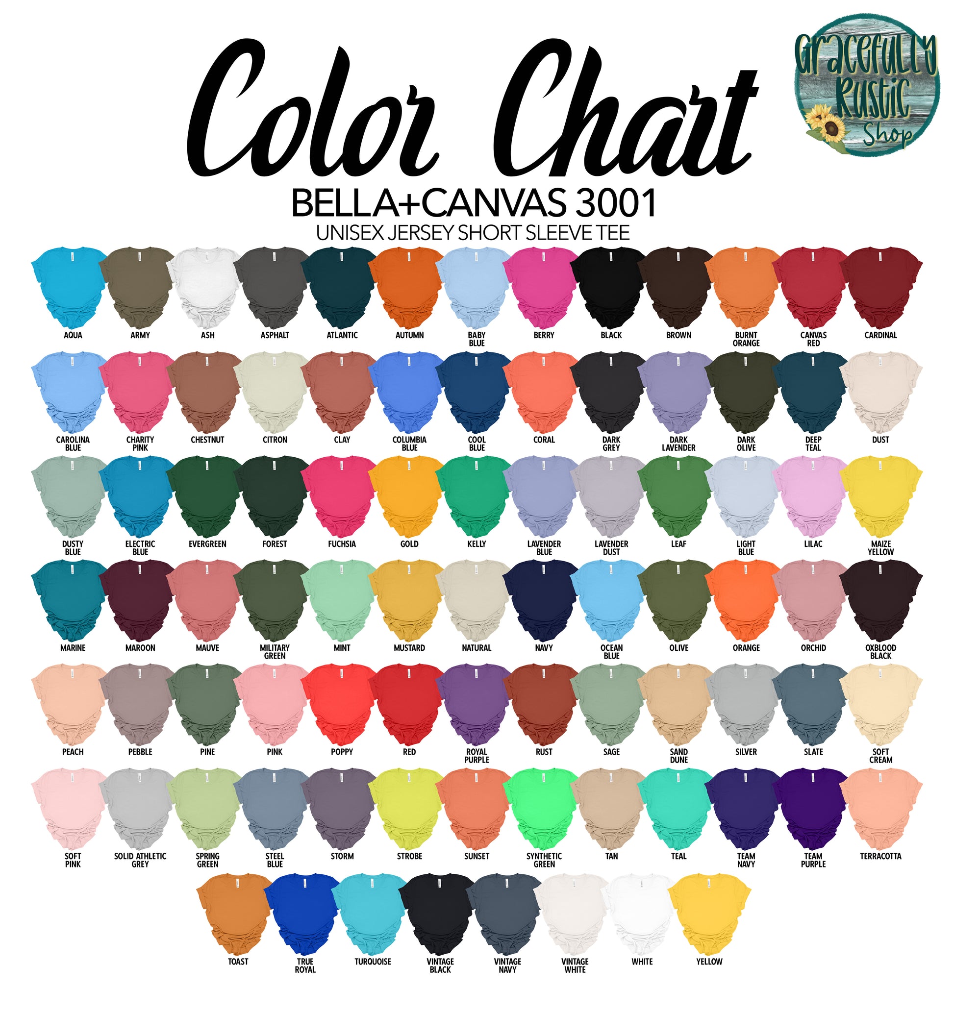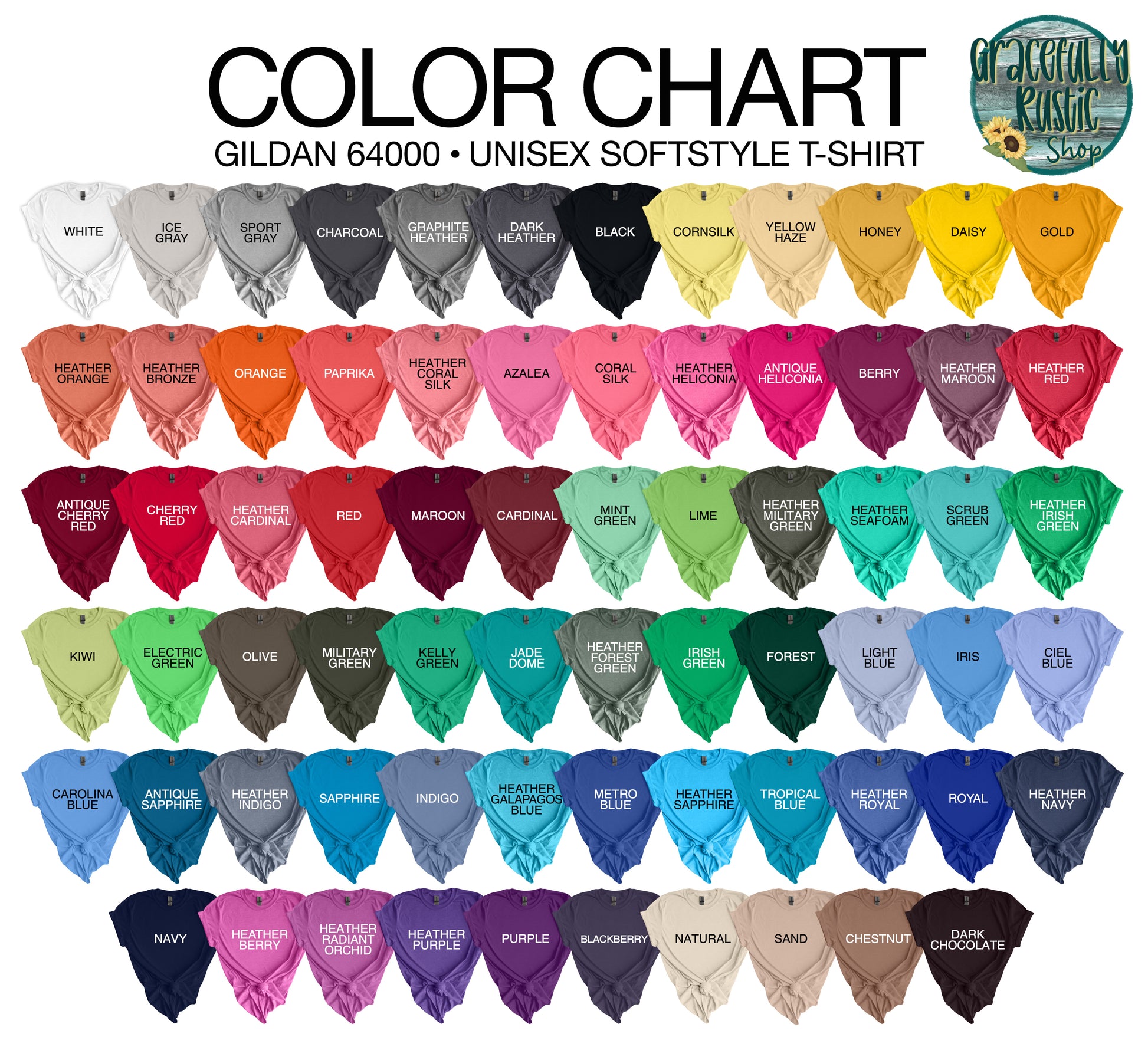 - Brands: Gildan, Comfort Colors or Bella Canvas